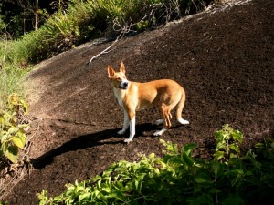 Da sein Sohn mir verriet, daß Paulo am übernächsten Tag mit dem Kanu auf die Vorderseite der Ilhabela fahren würde, um seinen Fisch zu verkaufen und mich dann einen Teil des Weges mitnehmen könnte, entschied ich noch einen Tag in Figueira zu bleiben. Den Vormittag nutzte ich dann, einen Trail zu erkunden, den Paulo und die anderen Familien nutzen, wenn sie nach Bonete laufen. Er ist kürzer und etwas steiler und etwa bis zur Hälfte als Trail sichtbar. Danach bewegt man sich dann frei durch den Regenwald. Witzig war, daß Paulos Jagdhunde mich nach etwa 1 / 2 Stunde aufspürten und mir von da an auf Schritt und Tritt folgten. Einer von ihnen hatte erst vor kurzem einen Schlangenbiß überlebt.