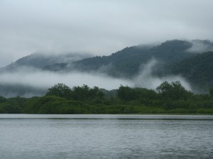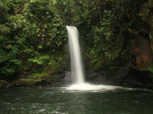 Dies änderte sich an dem Tag, als eines der Boote, aufgrund der Wetterverhältnisse, in einem größeren Abstand vom Festland zurückfuhr und somit ein Winkel entstand, der tief im Regenwald eine 50 bis 100 Meter hohe Wasserfallstufe sichtbar werden ließ. Als der Bootsmann mein Erstaunen im Gesicht sah, lachte er nur und sagte: “soviel er wüßte, ginge da sogar ein alter Trail hin”.